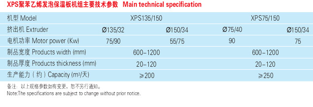 XPS 設(shè)備有單螺桿串聯(lián)擠出機(jī)和同向平雙串聯(lián)單螺桿擠出機(jī)兩種,規(guī)格有:Φ135/Φ150 單螺桿擠出機(jī)串聯(lián)式和Φ75/Φ150 同向平雙串聯(lián)單螺桿擠出機(jī)。同向雙螺桿擠出機(jī)由于混料效率卓越,能加工由眾多成分構(gòu)成的配料。