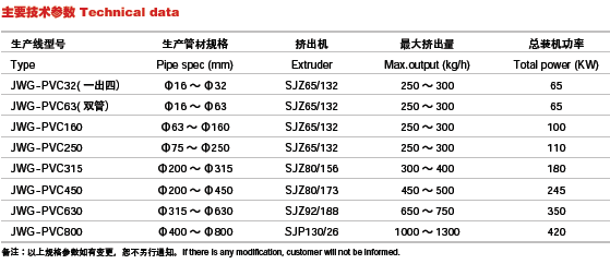 性能和優(yōu)點(diǎn): 上海金緯公司設(shè)計(jì)制造的大口徑UPVC 管材生產(chǎn)線用于生產(chǎn)各類給水、排水等 UPVC 大口徑管材。該生產(chǎn)線生產(chǎn)的最大管徑為800mm,擠出主機(jī)有SJZ 錐形雙螺 桿擠出機(jī)及平行雙螺桿...