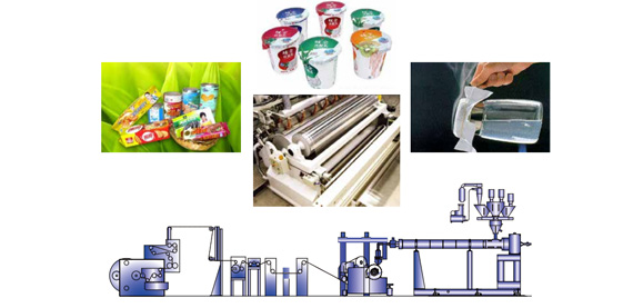 糖果、食品高阻隔包裝材料擠出復(fù)合生產(chǎn)線;醫(yī)藥高阻隔包裝材料擠出復(fù)合生產(chǎn)線;方便面淋膜復(fù)合 生產(chǎn)線;紙杯紙、紙餐盒淋膜機(jī)以及單面淋膜、雙面淋膜、單層擠出、雙層共擠、三層共擠生產(chǎn)線等高品質(zhì)設(shè)備。用途:該設(shè)備主要用于包裝、紙塑復(fù)合膜類,淋膜復(fù)合機(jī)組是用擠出流延法對(duì)高壓聚乙烯、OPP膜、紙杯紙、紙盒紙、商標(biāo) 紙、瓜子袋紙、清潔袋紙、鋁箔、膜類、布類等基材進(jìn)行單層 淋膜、雙層淋膜的設(shè)備。