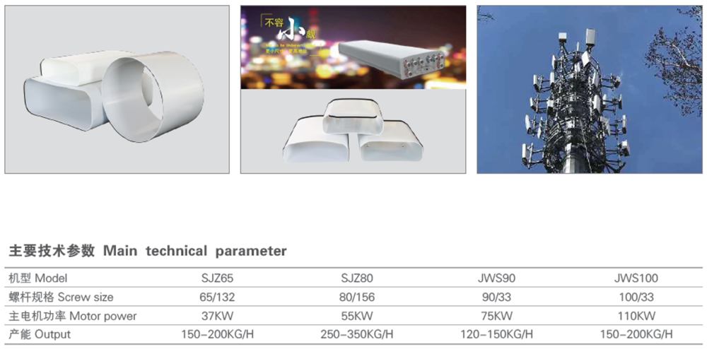 根據(jù)市場需求,我公司相應(yīng)研發(fā)推出:PVC,PC+ 玻纖、PP+ 玻纖,ASA 天線罩?jǐn)D出生產(chǎn)線。