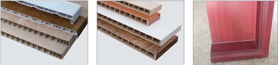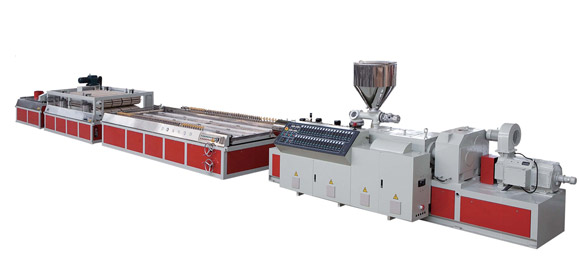 該生產線專用于寬幅PVC異型材生產線、木塑發(fā)泡門板、裝飾板擠出生產。生產線具有產量大,擠出穩(wěn)定,發(fā)泡倍率高等優(yōu)點?缮a各種裝 飾類制品,用途廣泛。制品表面硬度高,光滑平整,比重可控制在 0.6-0.9kg/m3之間。