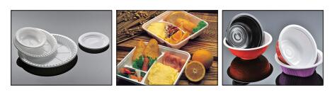 金緯公司研制開發(fā)的PBAT片材生產(chǎn)線,用于生產(chǎn)多層復合環(huán)保片材,該片材主要用于吸塑成型各類食品容器和包裝,如:托 盤、面碗、飯盒、糕盒、水果盤等。該設備可有效的利用石粉比例,既降低片材原料成本,又提高片材的可降解性并保證片材 的綜合物理性能和后續(xù)可加工性能。