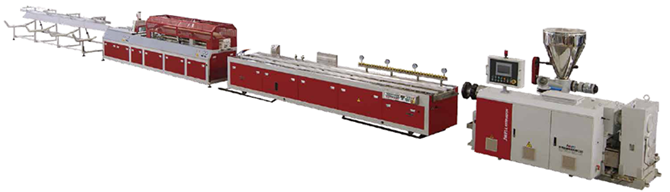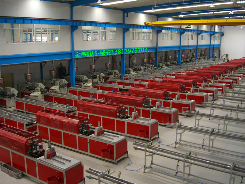 YF塑窗異型材生產(chǎn)線配用錐雙或平雙螺桿擠出機(jī),可加工PVC塑料門窗異型材、鋁塑復(fù)合異型材、異型電纜多孔穿線管、裝飾
